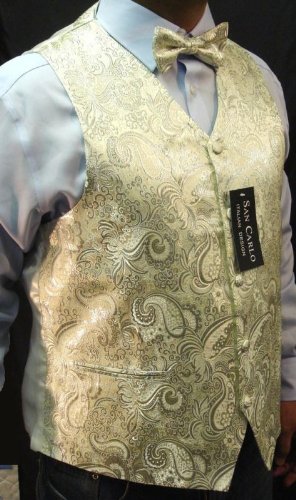 NEW MEN'S QUALITY SILVER PAISLEY WAISTCOAT & BOWTIE SET