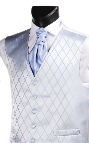 A beautifully made Blue Large Diamonds Waistcoat. 'Fancy' or 'Patterned' Waistcoats make a wonderful addition to either a wedding or prom. Cravats and Hankies available to match, please search After Sunset on Amazon
