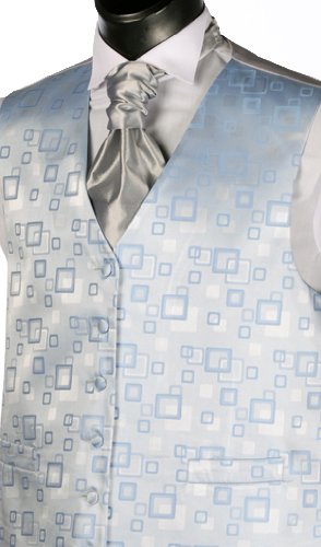 A beautifully made Blue Squares Patterned Waistcoat. 'Fancy' or 'Patterned' Waistcoats make a wonderful addition to either a wedding or prom. Cravats and Hankies available to match, please search After Sunset on Amazon
