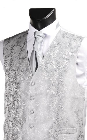 A beautifully made Grey Floral Patterned Waistcoat. 'Fancy' or 'Patterned' Waistcoats make a wonderful addition to either a wedding or prom. Cravats and Hankies available to match, please search After Sunset on Amazon