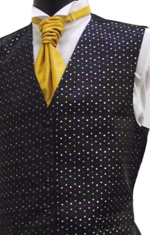 Men's Dress/Party Waistcoat Black with Multi Colour Spot Pattern Front Panel