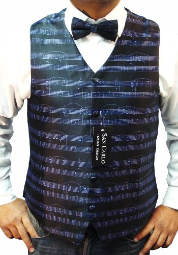 MEN'S QUALITY BLACK MUSIC NOTES WAISTCOAT & BOWTIE SET **SAME DAY FREE POSTING**