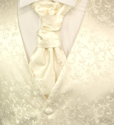 Paul Malone wedding waistcoat Set ivory 5pcs tuxedo vest + Neck Tie + Plastron + Hanky + 2 cufflinks