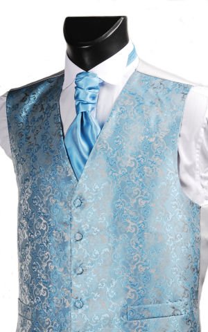A beautifully made Turquoise Floral Patterned Waistcoat. 'Fancy' or 'Patterned' Waistcoats make a wonderful addition to either a wedding or prom. Cravats and Hankies available to match, please search After Sunset on Amazon