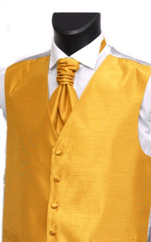 Men's Wedding Waistcoat, Silk Effect - Gold - All Sizes