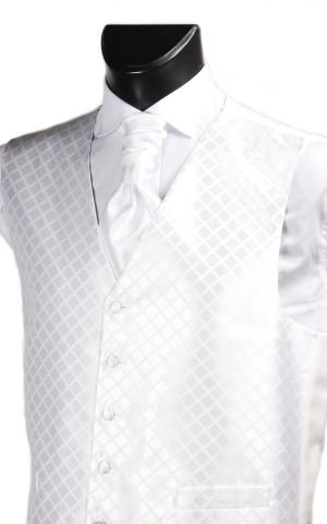 A beautifully made White Small Diamonds Waistcoat. 'Fancy' or 'Patterned' Waistcoats make a wonderful addition to either a wedding or prom. Cravats and Hankies available to match, please search After Sunset on Amazon