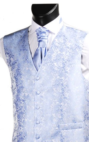 A beautifully made Blue Floral Patterned Waistcoat. 'Fancy' or 'Patterned' Waistcoats make a wonderful addition to either a wedding or prom. Cravats and Hankies available to match, please search After Sunset on Amazon