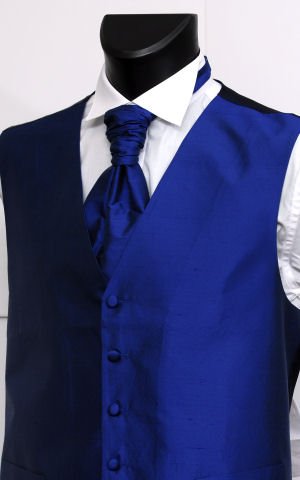 Men's Wedding Waistcoat & Cravat, Silk - French Navy - All Sizes