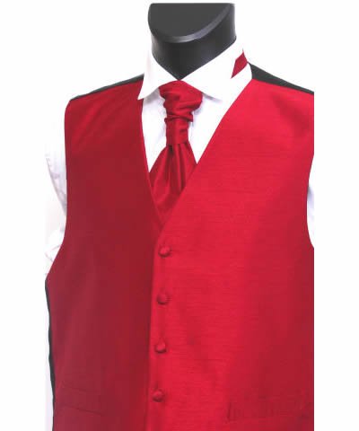 Men's Wedding Waistcoat, Silk Effect - Red - All Sizes